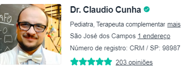 "Dr. Cláudio é muito atencioso e humano, tira todas as dúvidas e está sempre atento. Realmente, um pediatra diferenciado que, além do grande conhecimento, nos deixa sempre à vontade para esclarecer todas as dúvidas."